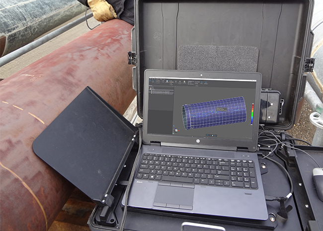 Creaform's burst pressure simulations generate 3D visual reports of the digitized surface. They calculate stress and strain to evaluate burst pressure and its location, using the triaxial strain criteria of API-579. This allows asset owners and service companies to clearly visualize the constraints and limits on their operating pipelines.