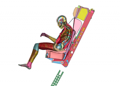 Based on the finite element models, the numerical simulation experts proposed improvements to the seat design to reduce the energy transmitted to the pilot during seat firing. They also demonstrated that these modifications offered better temporal distribution of forces and acceleration. Convinced that all these numerical simulations and analyses on models and biofidelic dummies could reduce the risk of spinal injuries, Lortie Aviation chose to proceed with the new seat configuration.