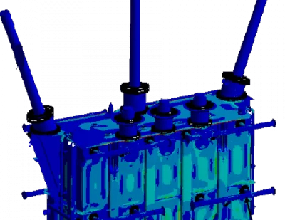 ABB teamed up with CREAFORM to design and validate the structure of a power transformer subjected to the Ontario Building Code (OBC) requirements. Ansys simulations were used to determine the stresses and modal behavior of the transformer. Dead load, climatic, hydrostatic pressure as well as siesmic load cases have been applied and combined to evaluate the structural strength of the assembly based on resistance criteria defined by CSA-S16 – Design of Steel Structure. Finite element modeling allowed to address the strength of the structural components, welds, bolted joints and determine reaction loads. From the initial design, mass and strength optizations and recommendations have been made to end up with a better final design for manufacturing.