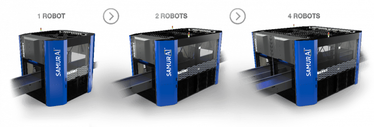 The product’s greatest quality is its ability to adapt to different configurations and combine multiple robots, either in-line or in parallel, making it ideal for an integration into existing plant layouts with restricted space. Separations of the different steel or glass panels means that the SamurAI™ a modular solution that will adapt to sorting centers all over the world.
